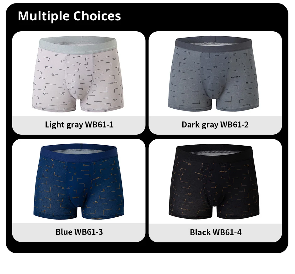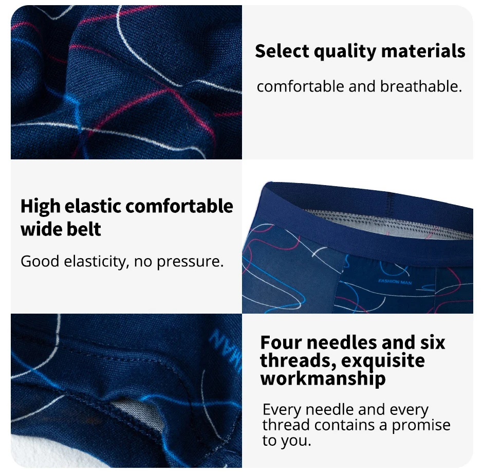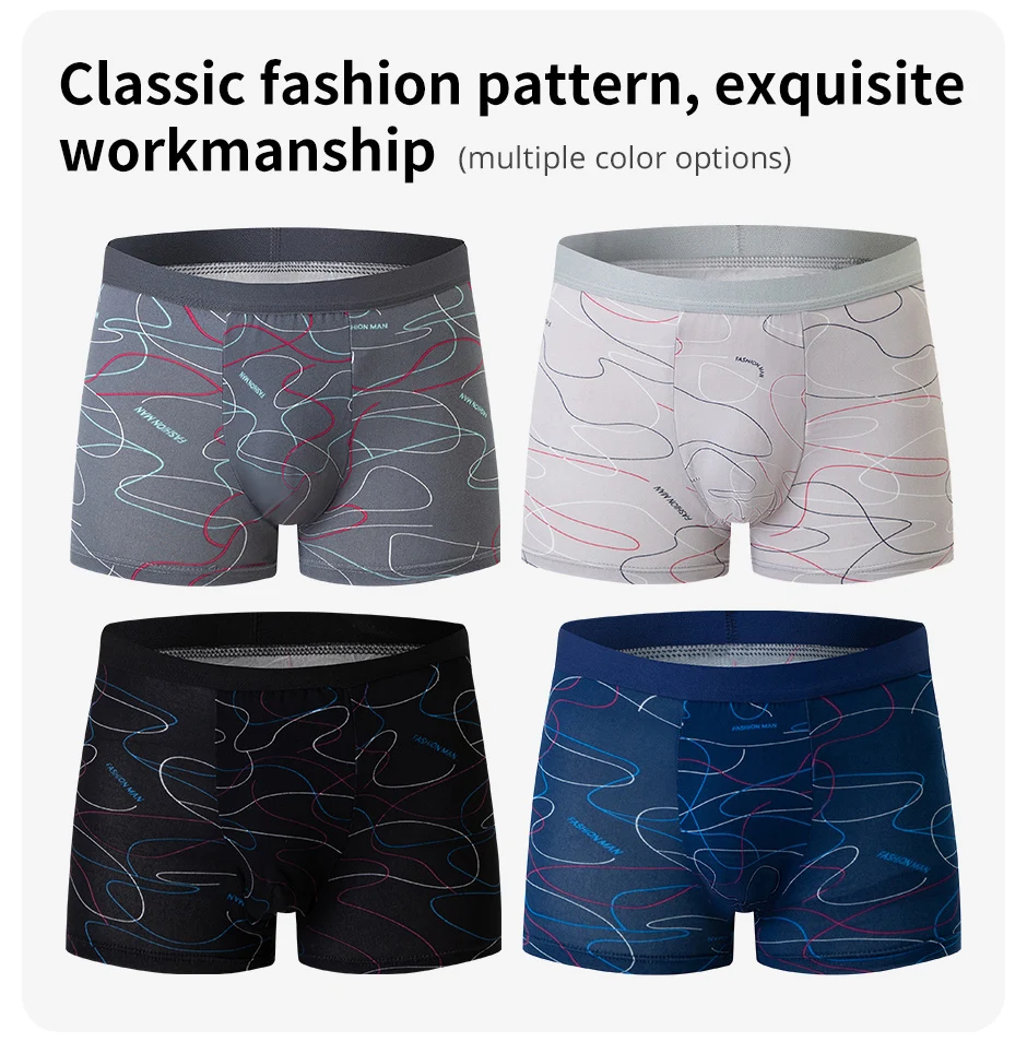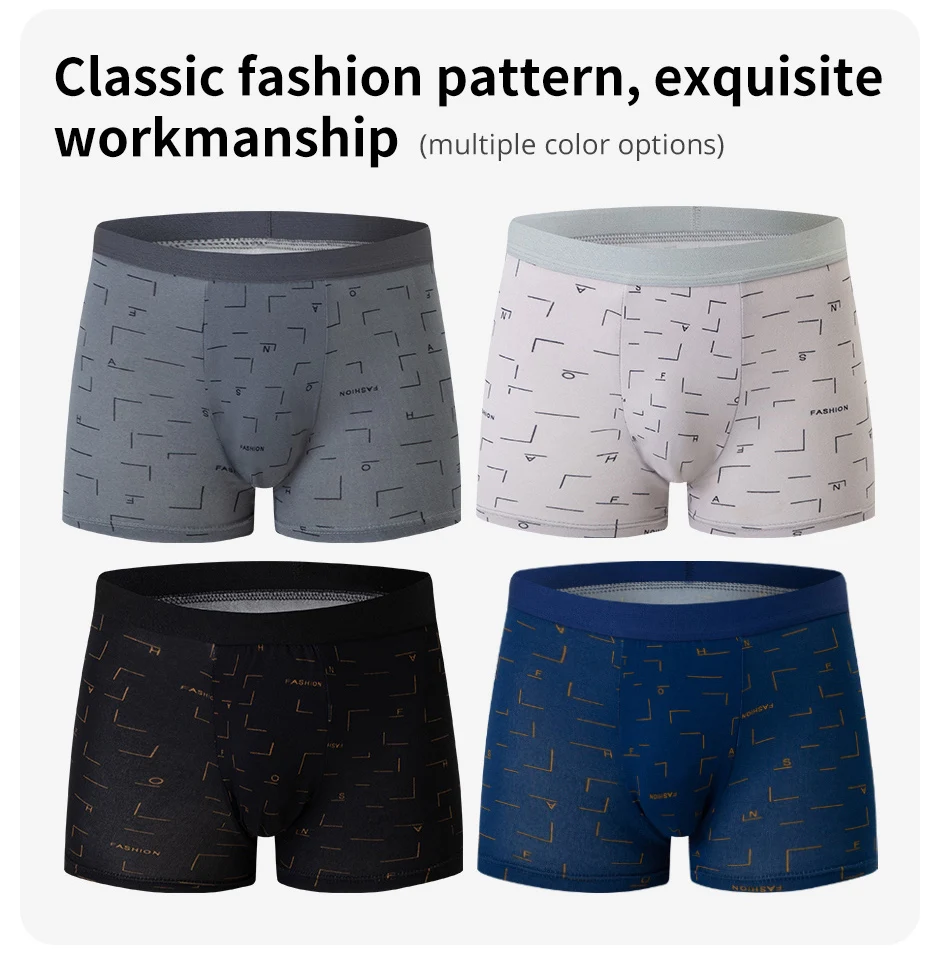 4 Pack European and American Size MEN'S Printed Fashion Boyshort Comfortable MEN'S plus Size Underwear Beach Swimming Trunks