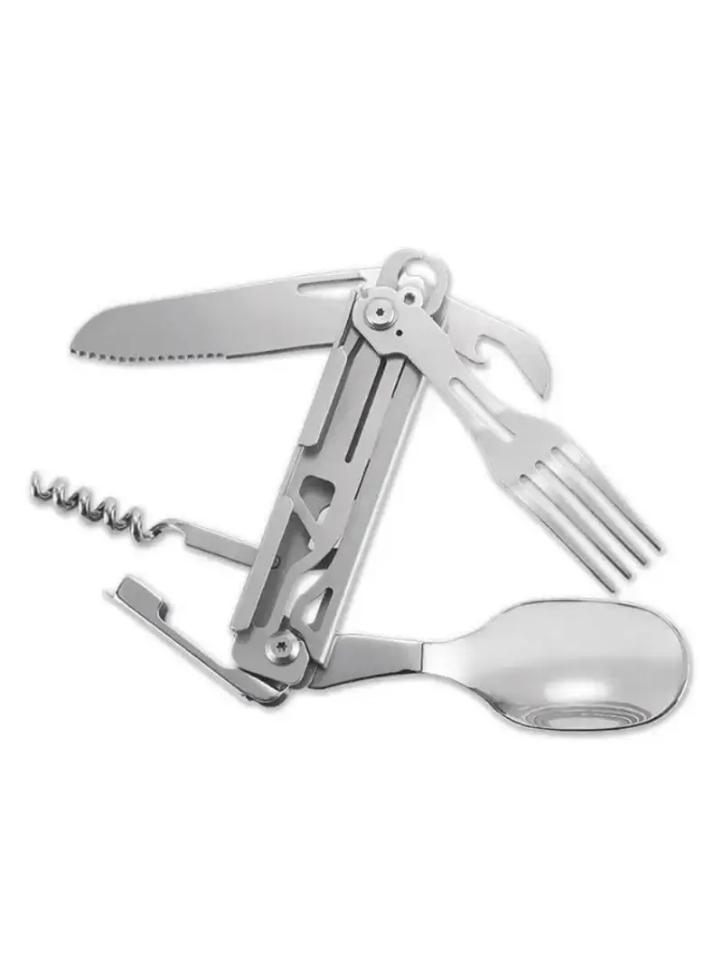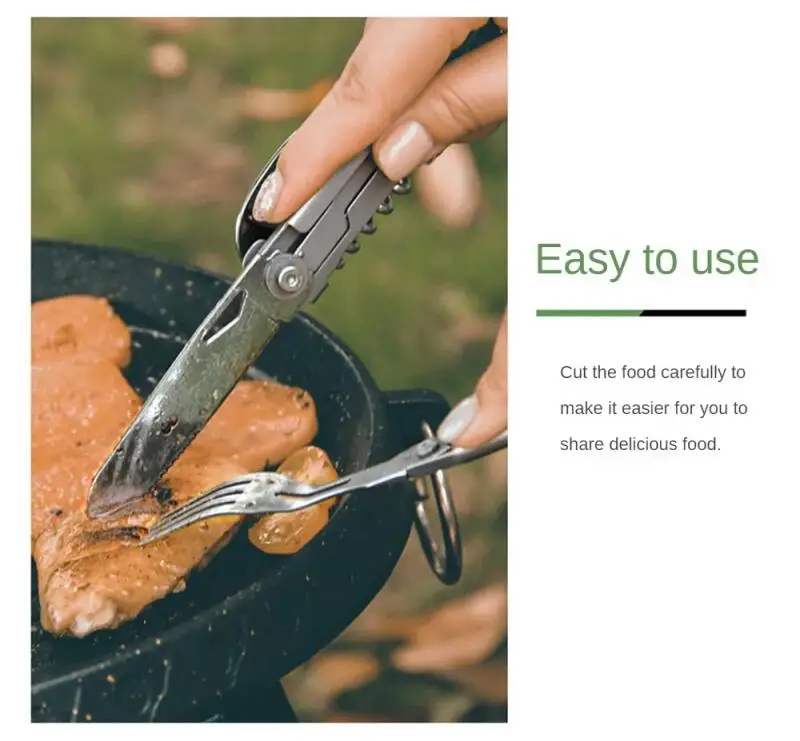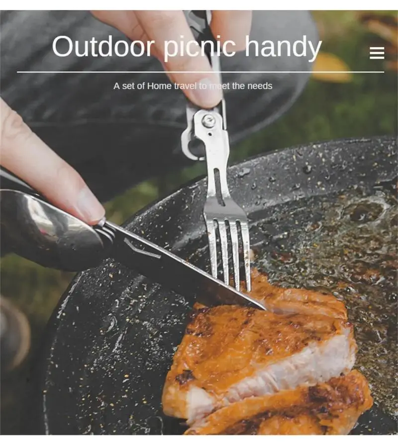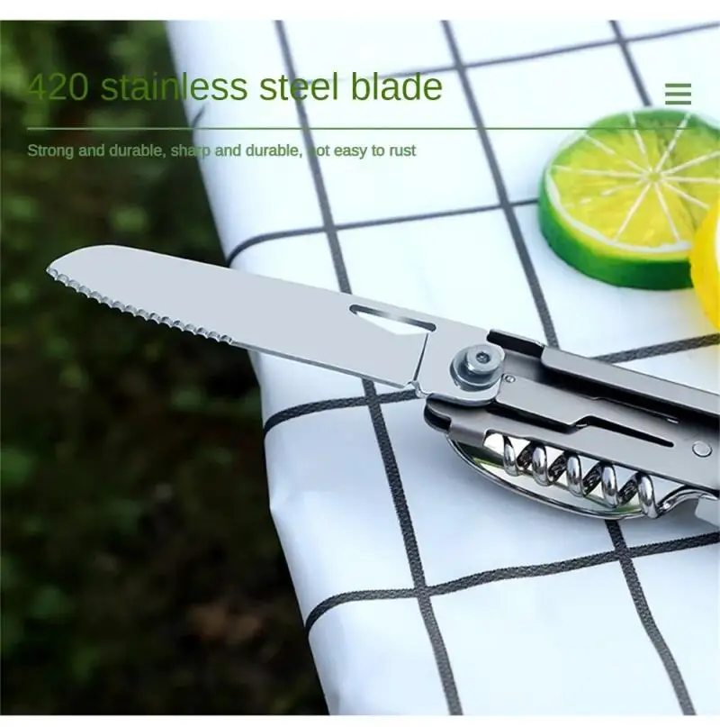 420 Stainless Steel Pocket Knife Multi-tool Portable Fork Spoon Outdoor Survival Camping Folding Knife Detachable Hand Tools