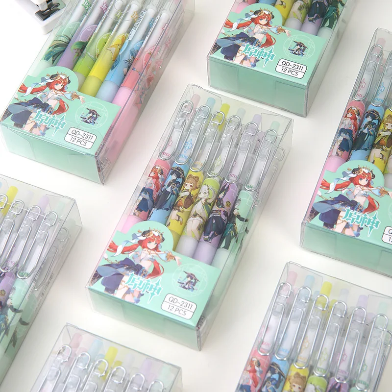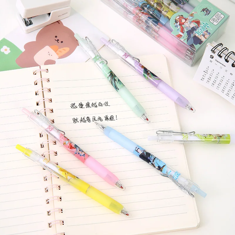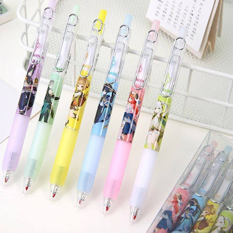 6/12Pcs Game Genshin Impact Roller Ball Pen Cartoon Stationery Nilou Wanderer Alhaitham Tighnari Yaoyao Nahida Black ink Gel pen