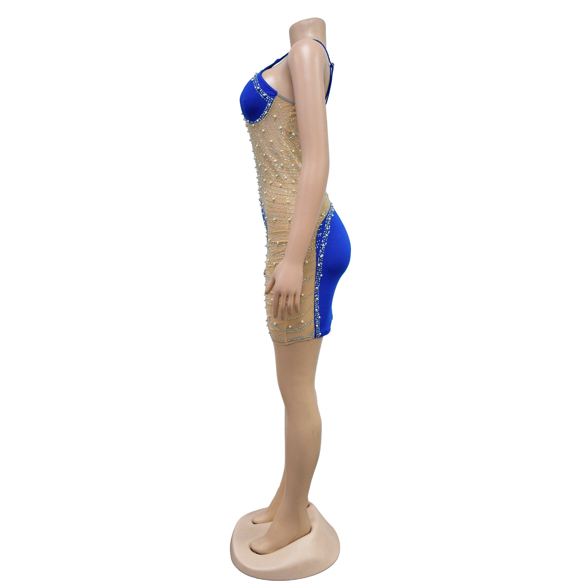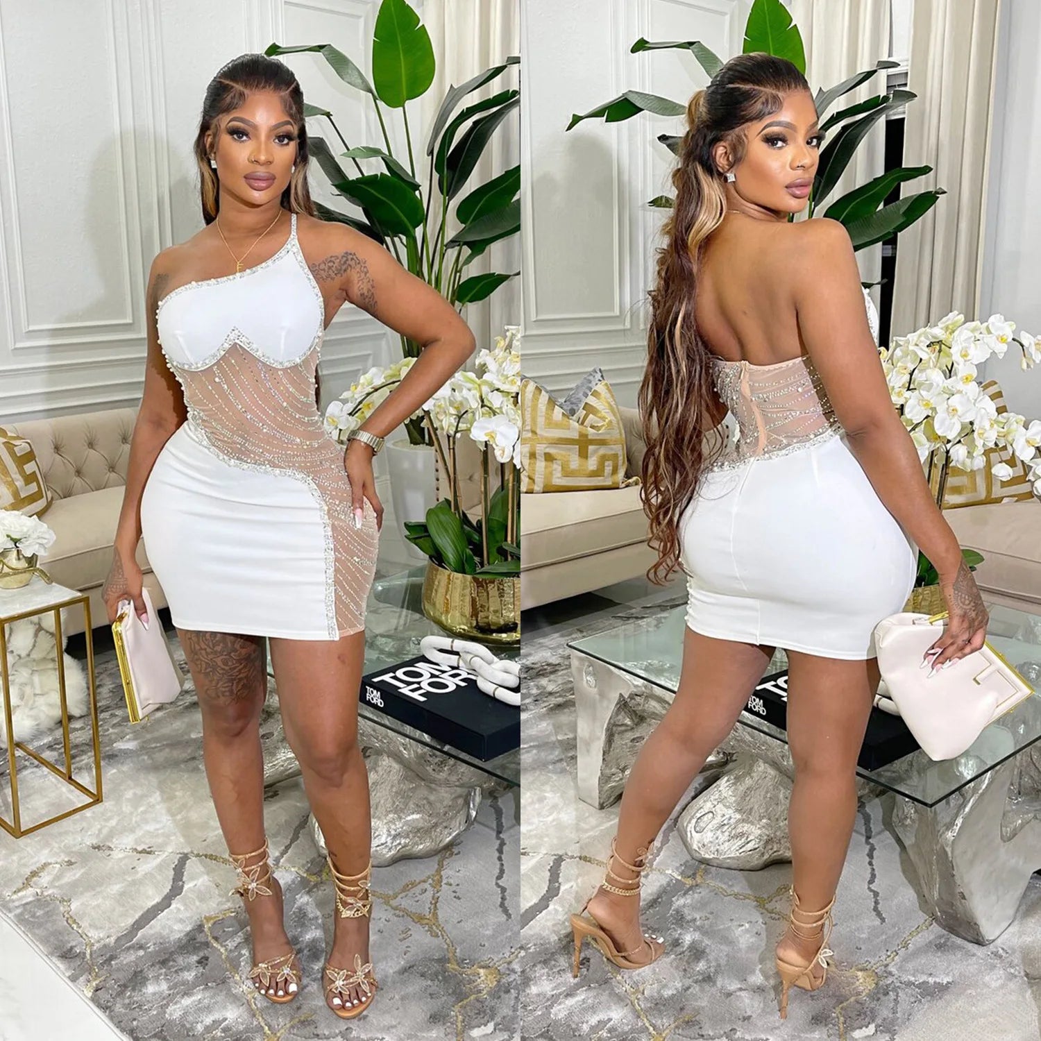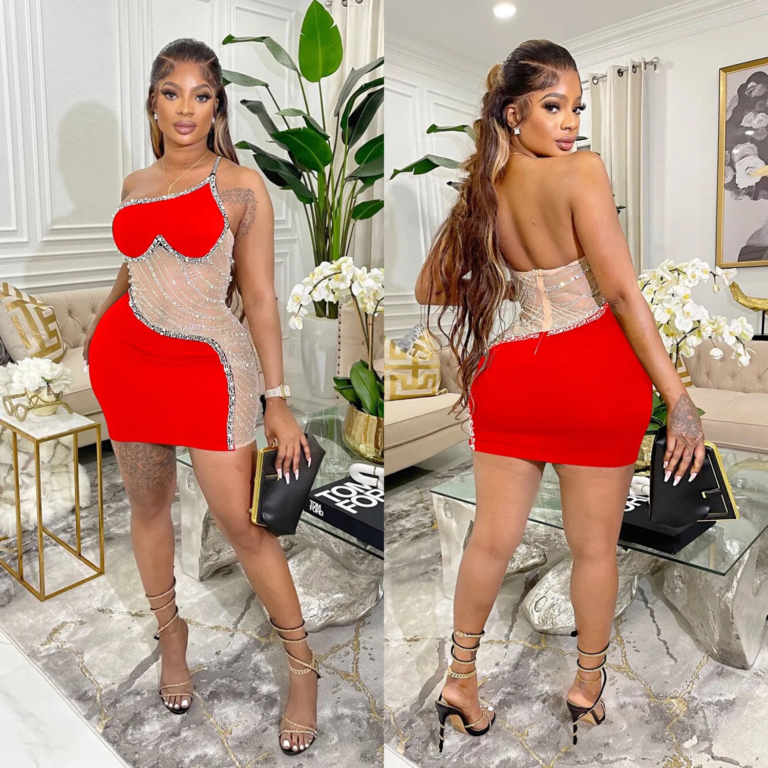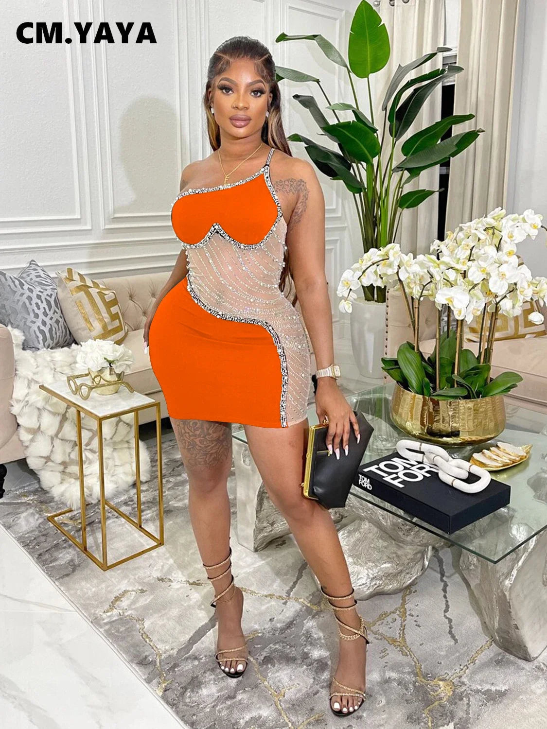 CM.YAYA Women Diamonds Hot Rhinestones Mesh Patchwork Sweetheart