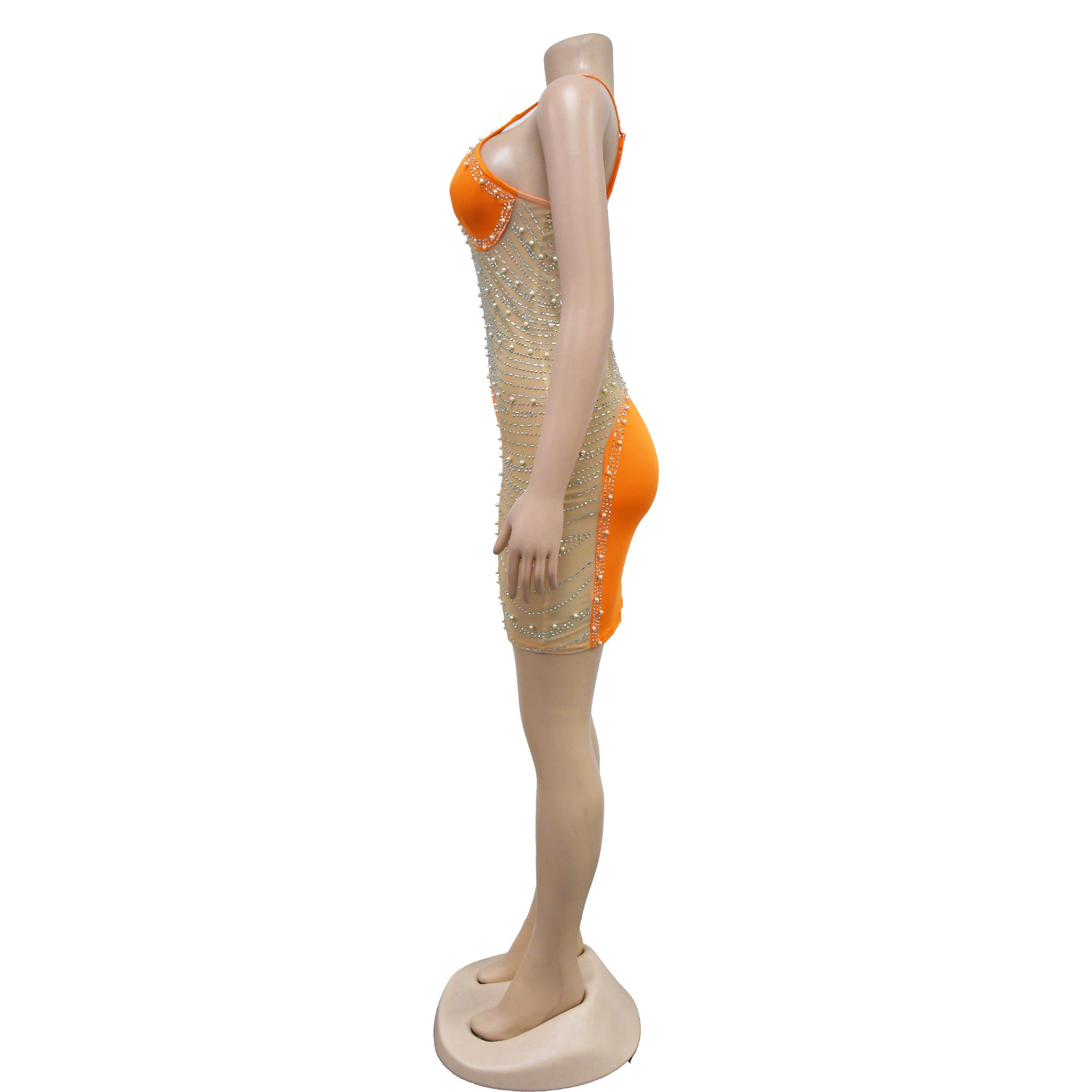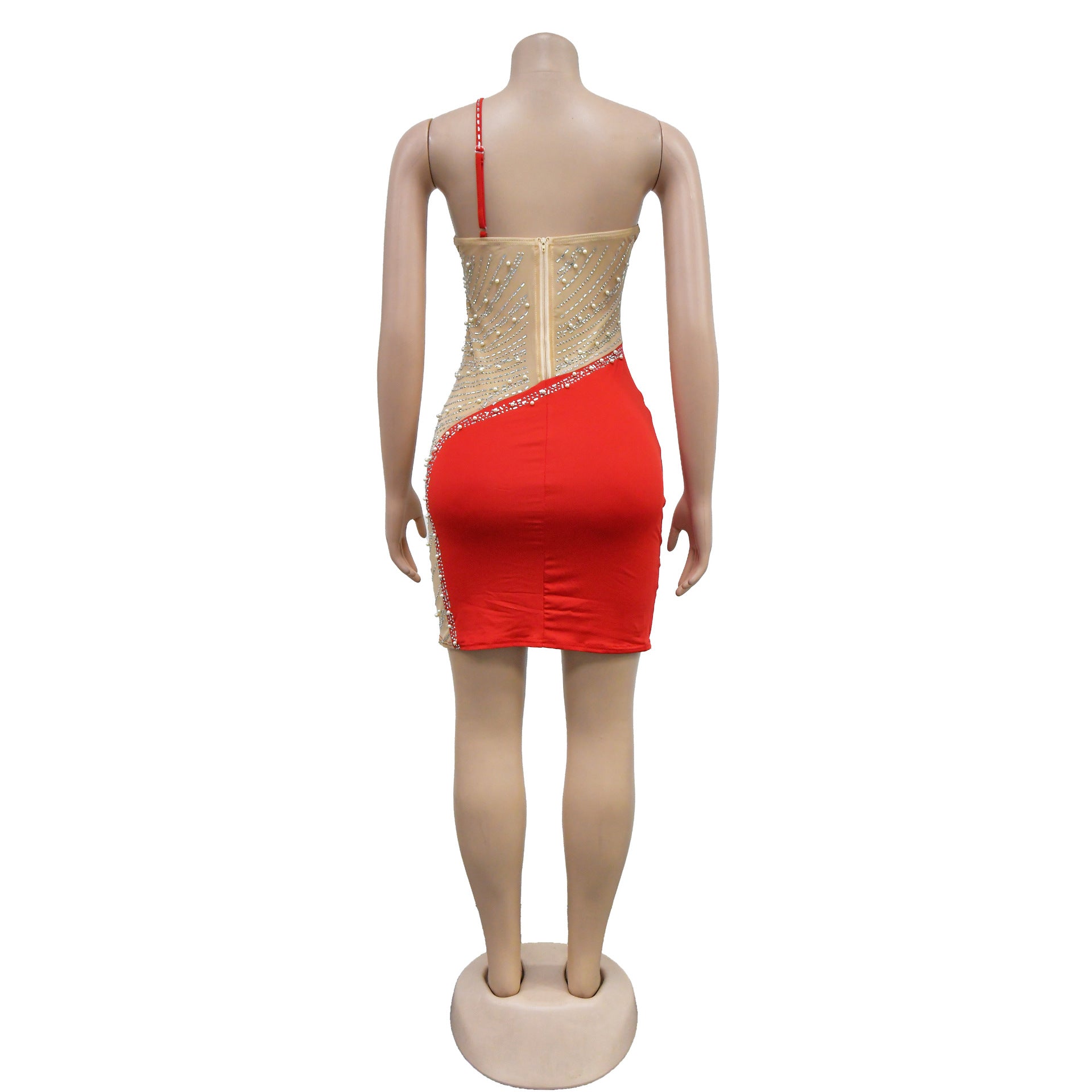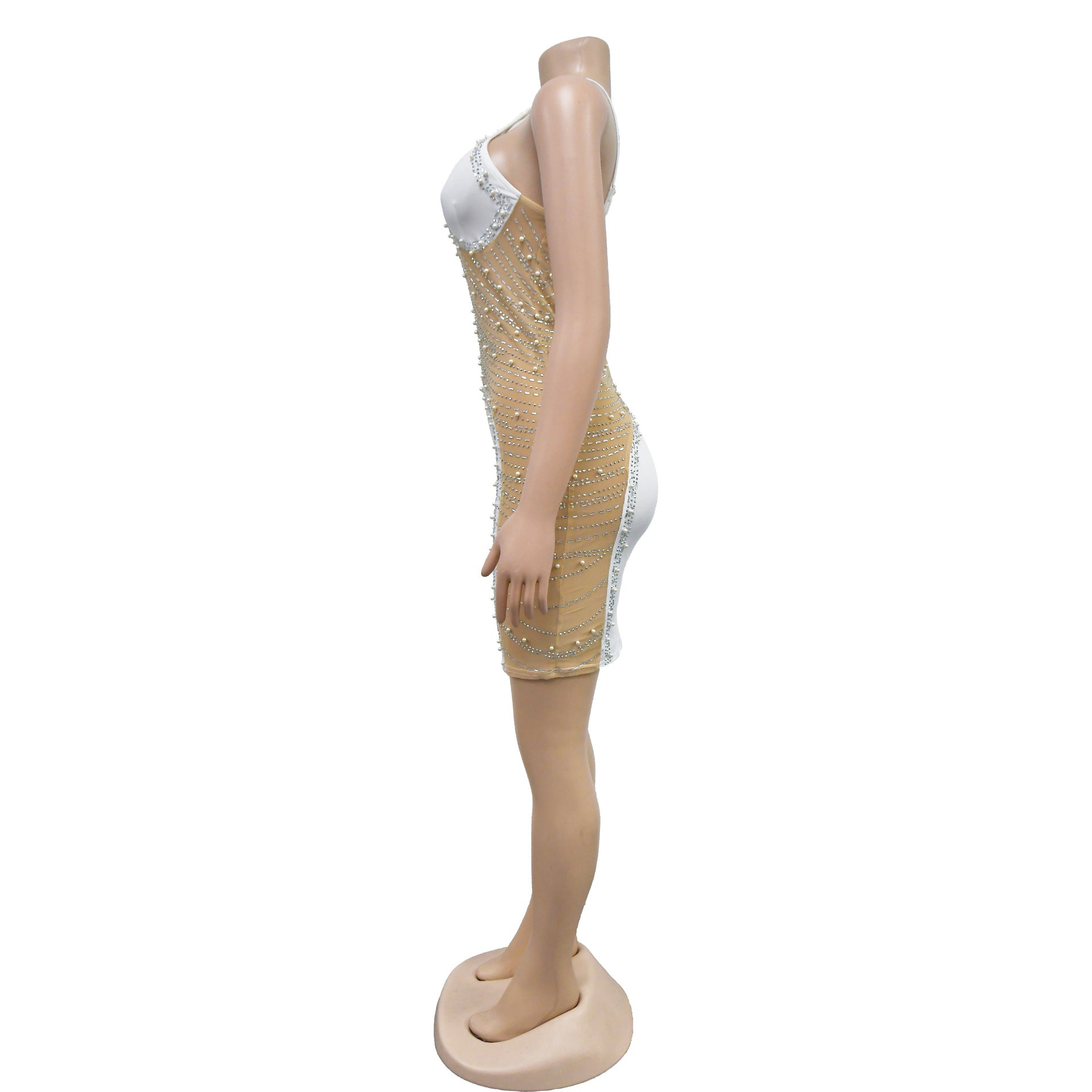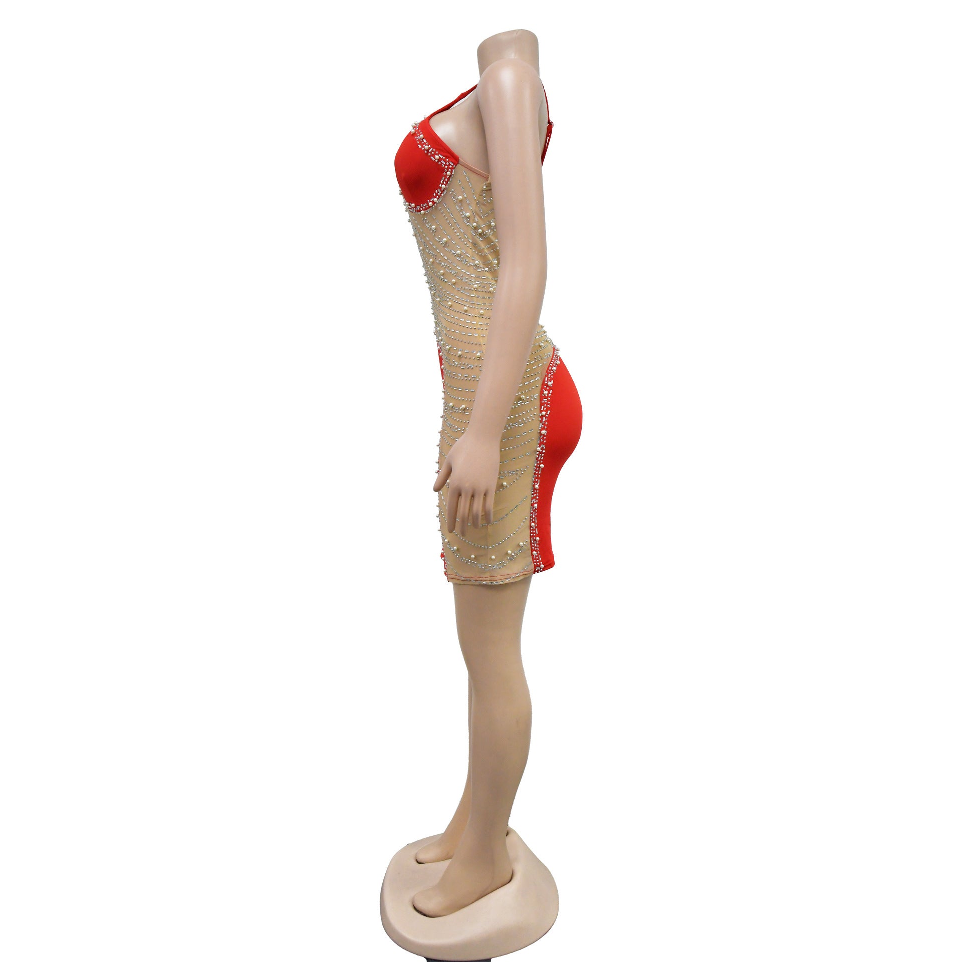 CM.YAYA Women Diamonds Hot Rhinestones Mesh Patchwork Sweetheart