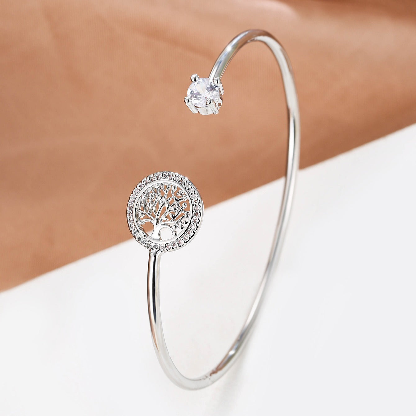 Cubic zirconia Copper Bracelet Tree Of Life Adjustable Silvery Bracelet Jewelry