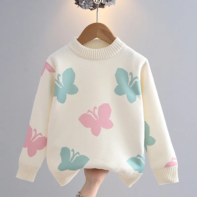 Girls' Sweater Thickened Autumn/Winter New Fashionable Versatile Children's Knitted Sweater Girls' Top Sweet and Cute