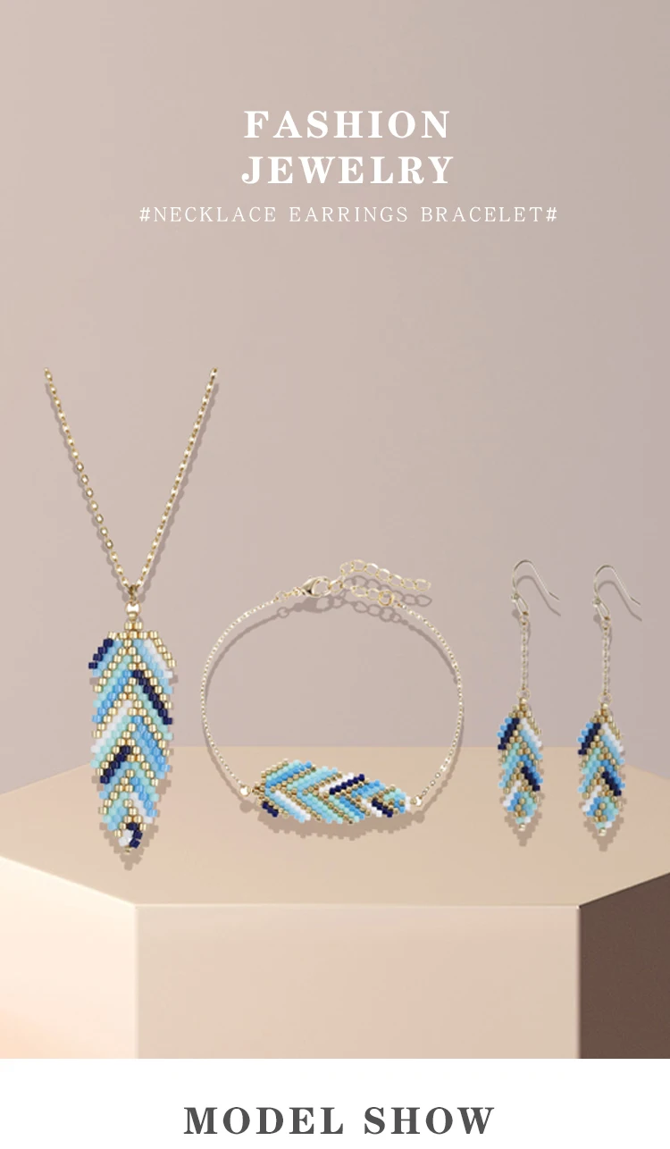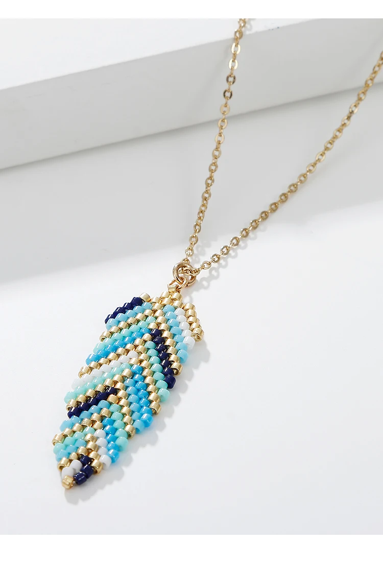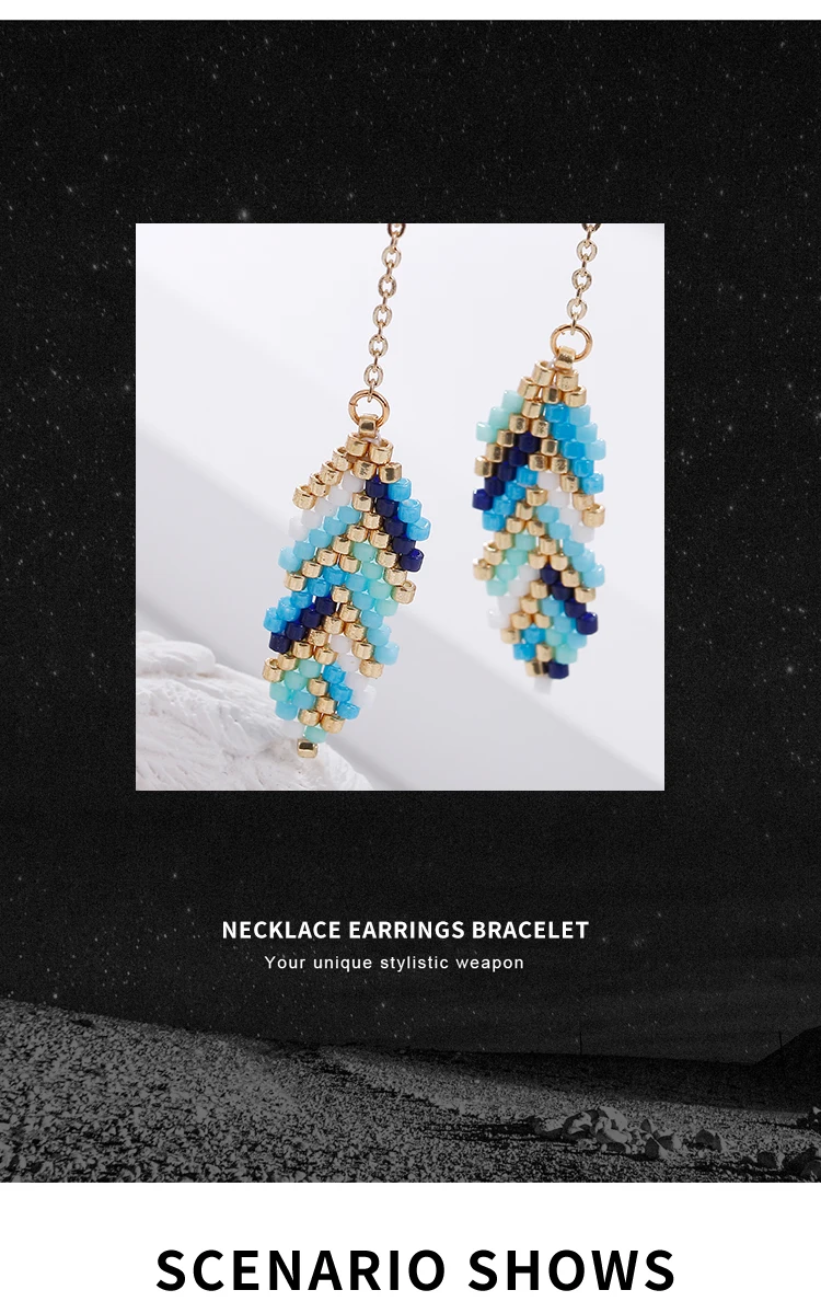 Hand Made Trendy Boho Jewelry Women Seed Beads Bracelets Necklace Earrings Leaf Miyuki Jewelry Set