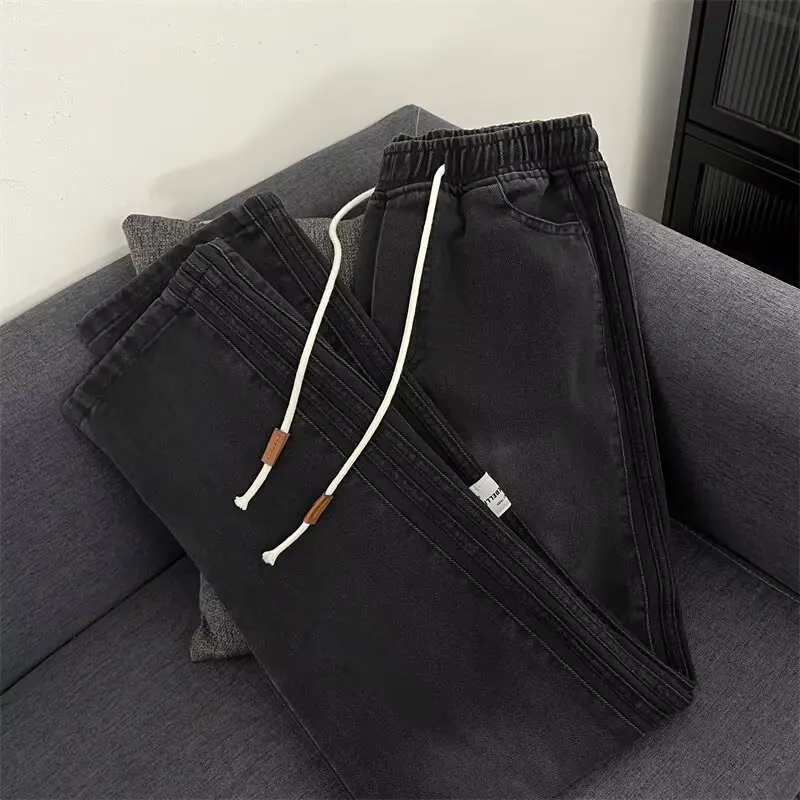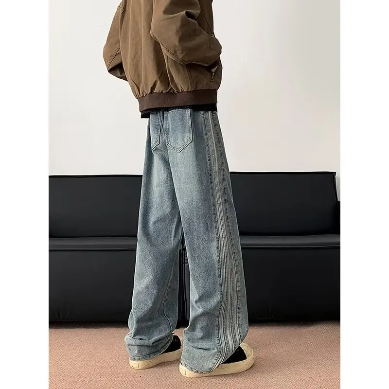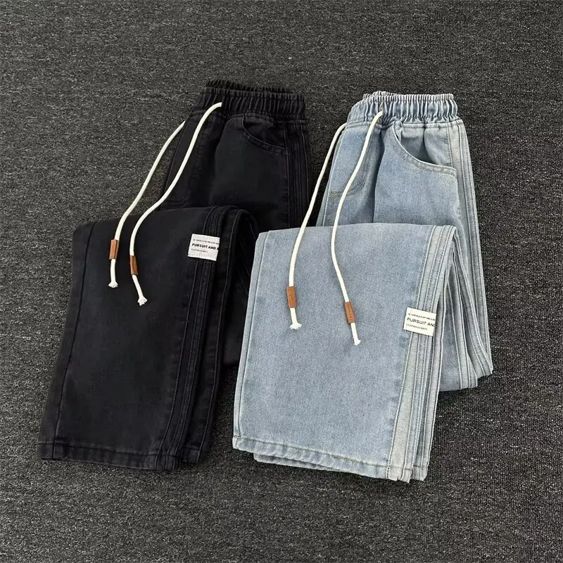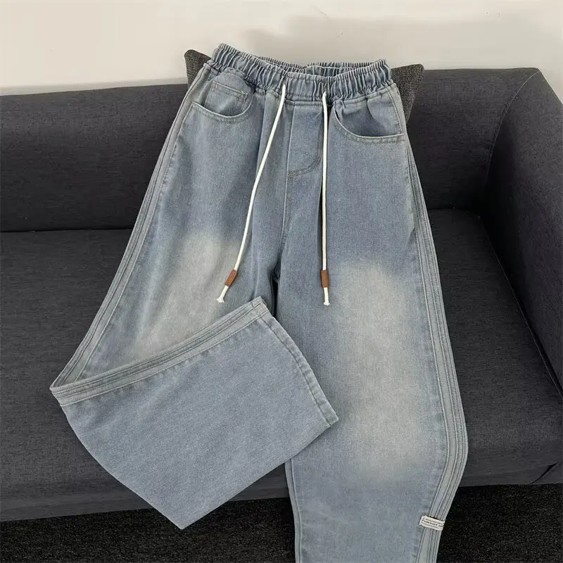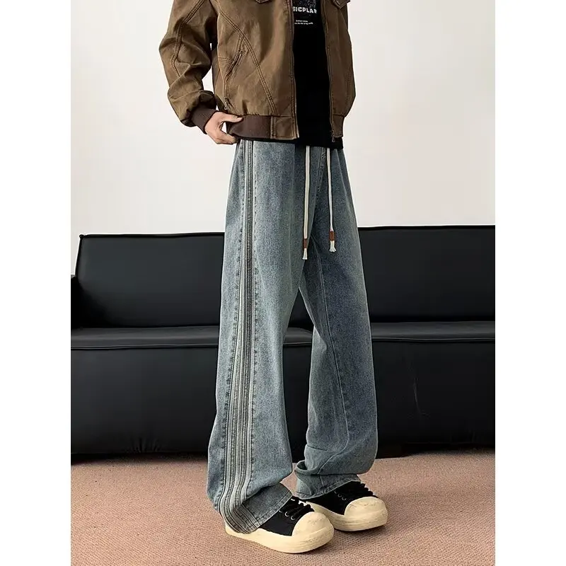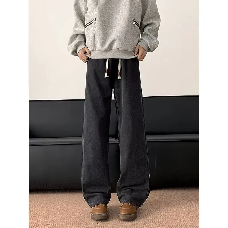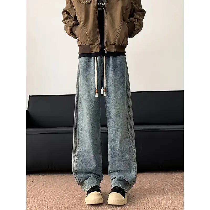 Jeans Men 2025 Spring Autumn American Style Vintage Loose Straight Leg Long Pants Men's Youth Popular Drawstring Wide Leg Pants
