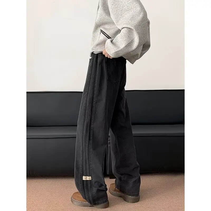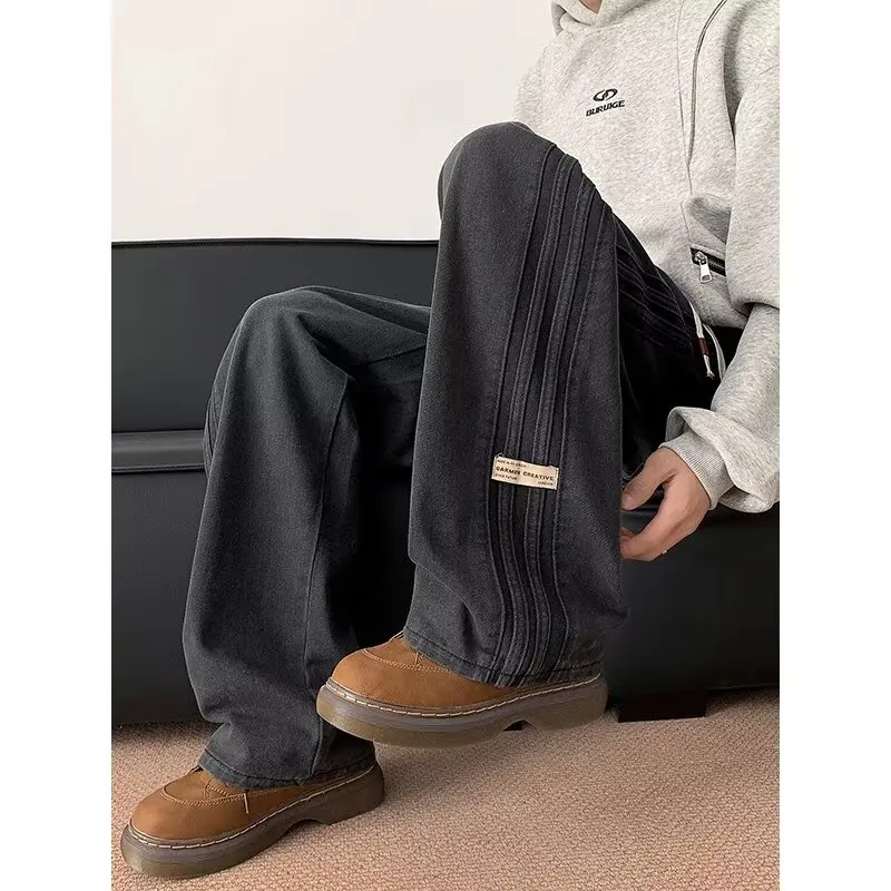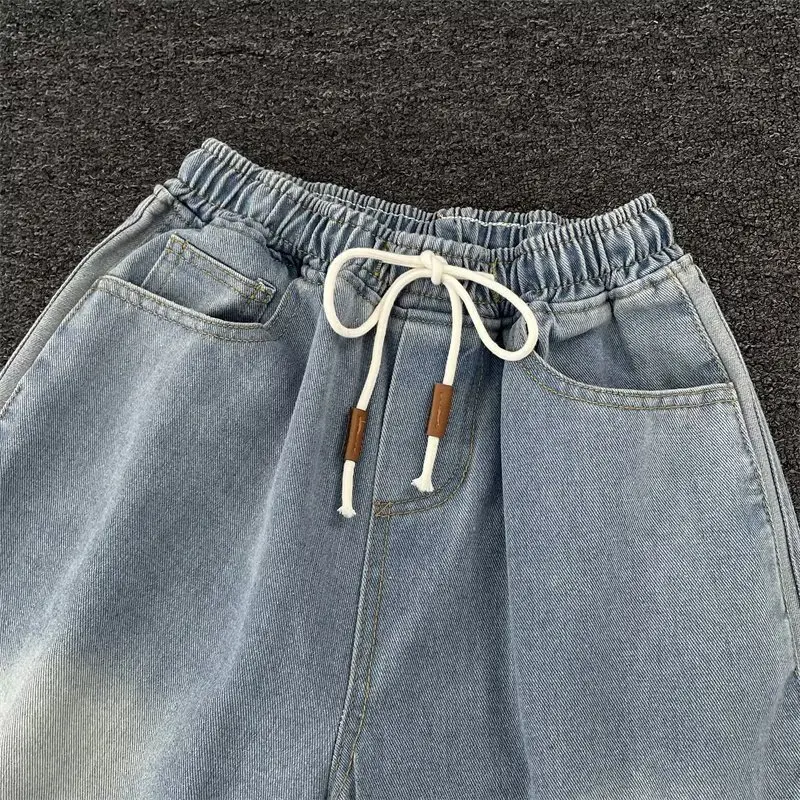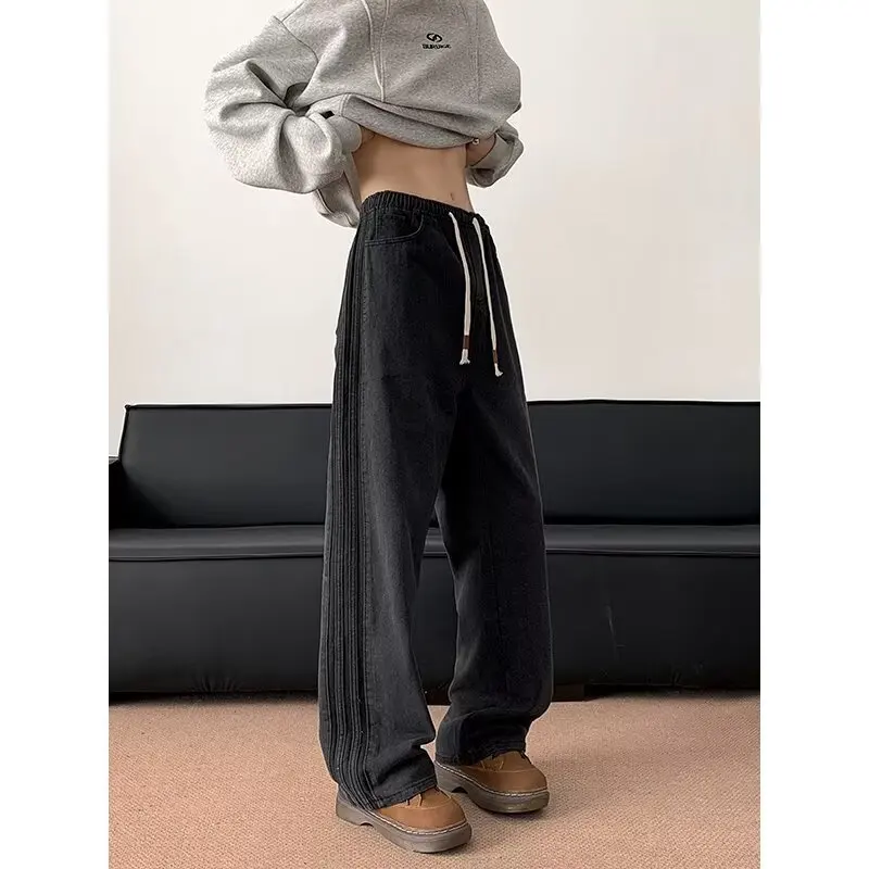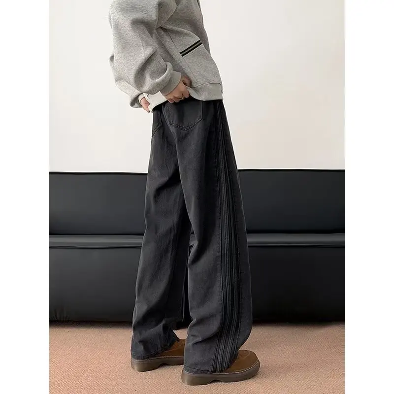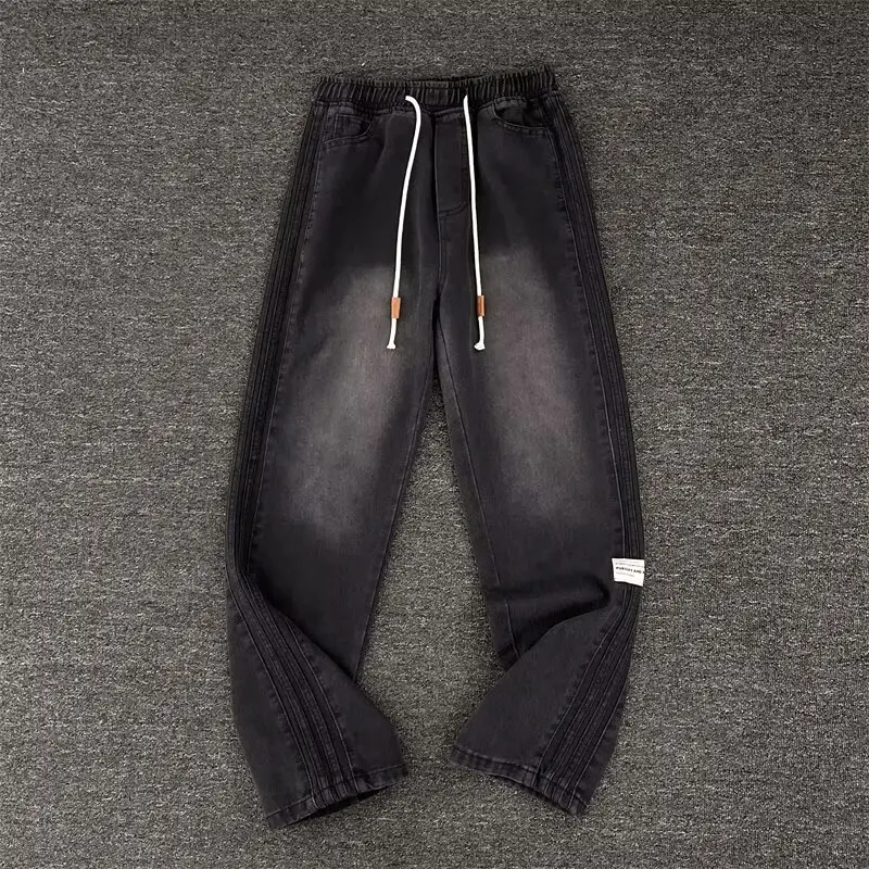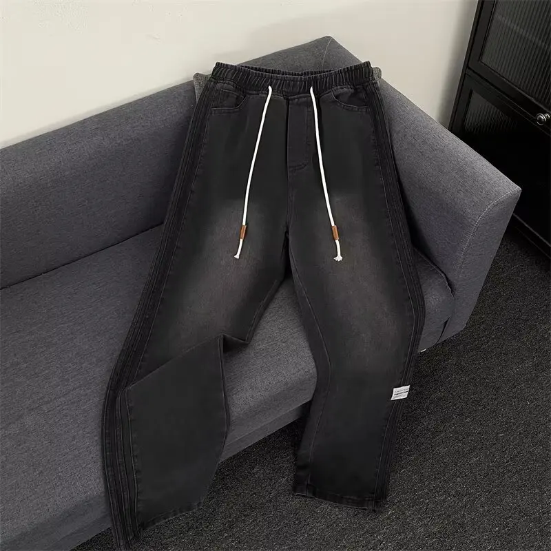 Jeans Men 2025 Spring Autumn American Style Vintage Loose Straight Leg Long Pants Men's Youth Popular Drawstring Wide Leg Pants