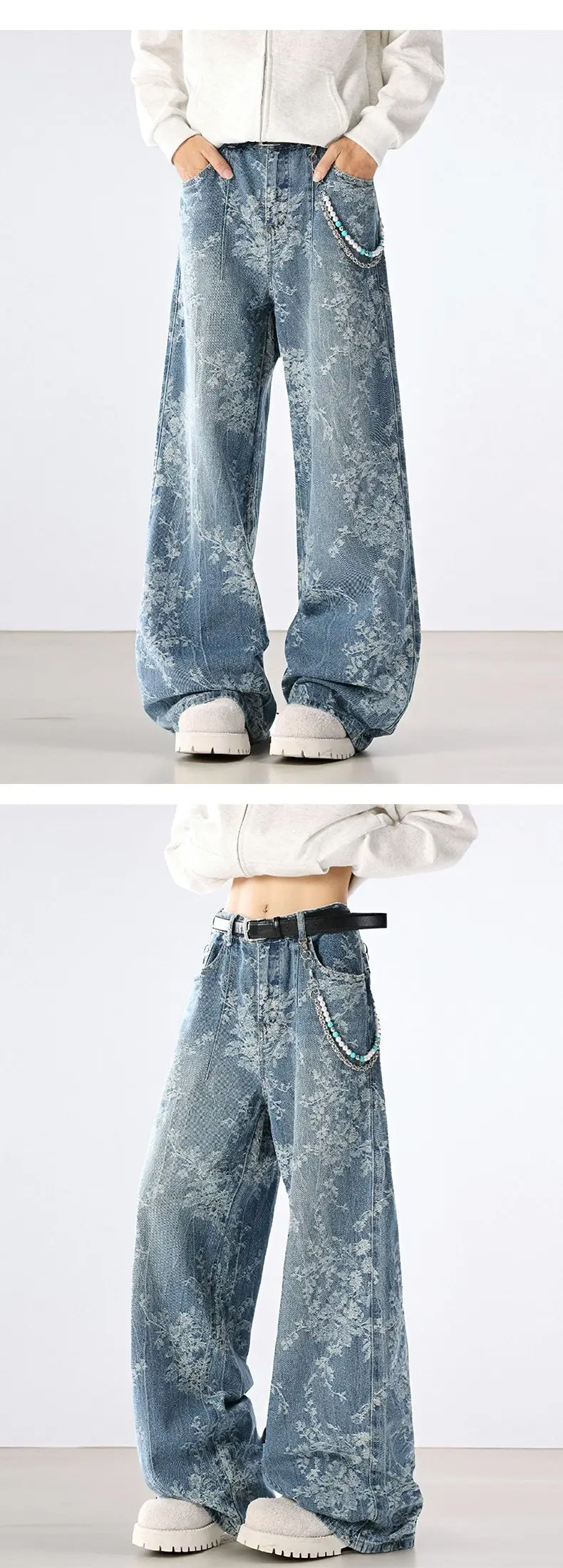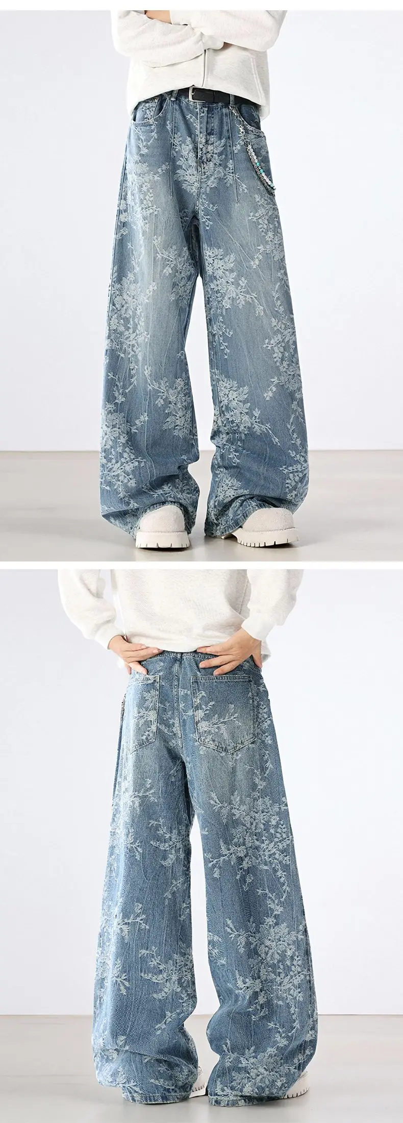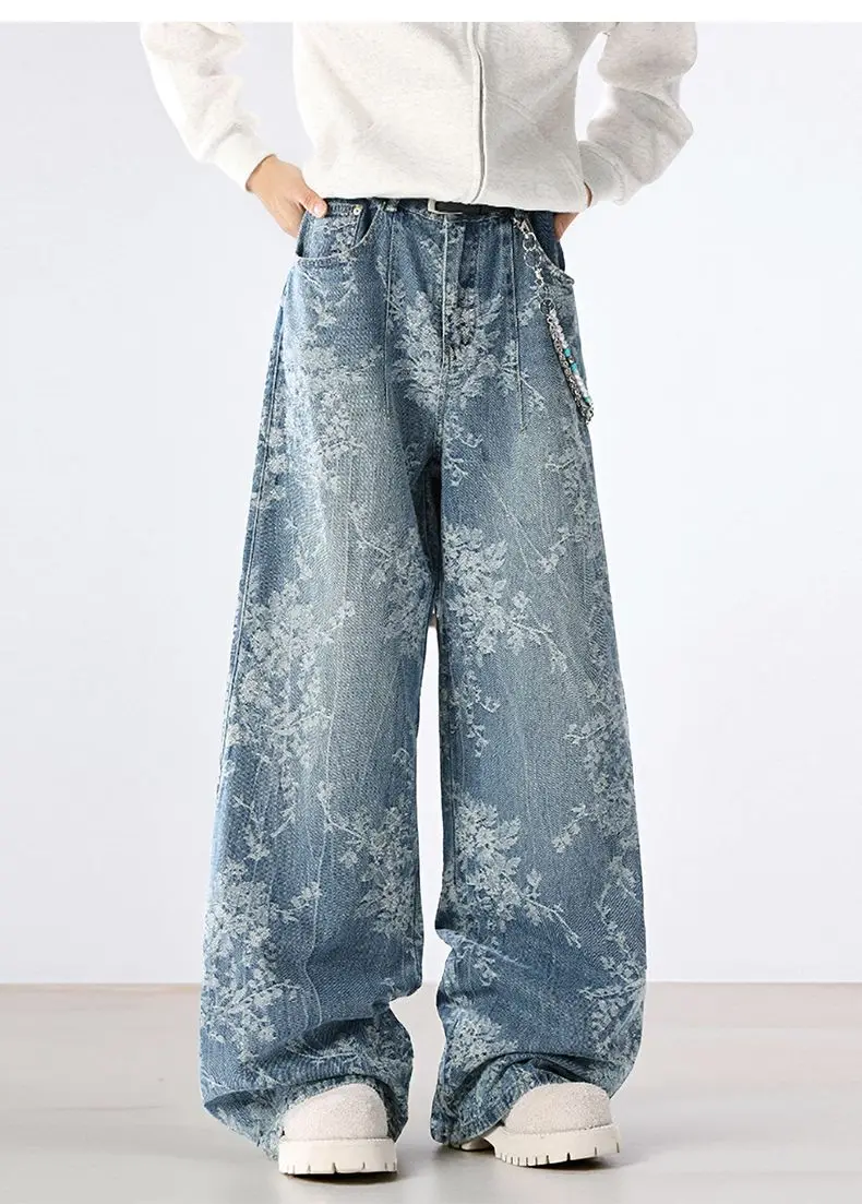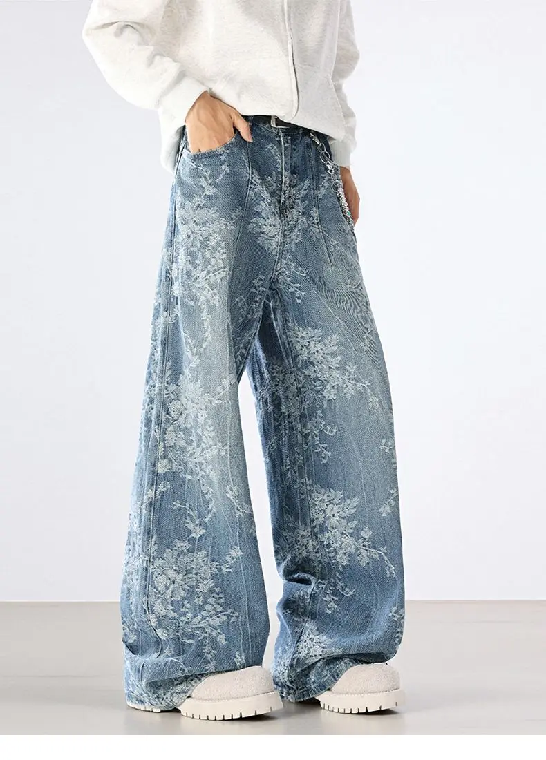 Jeans Men Wide Leg Jeans Male Loose Straight Embroidery Denim Pants Autumn Harajuku Vintage Jean Trousers Streetwear Clothes New