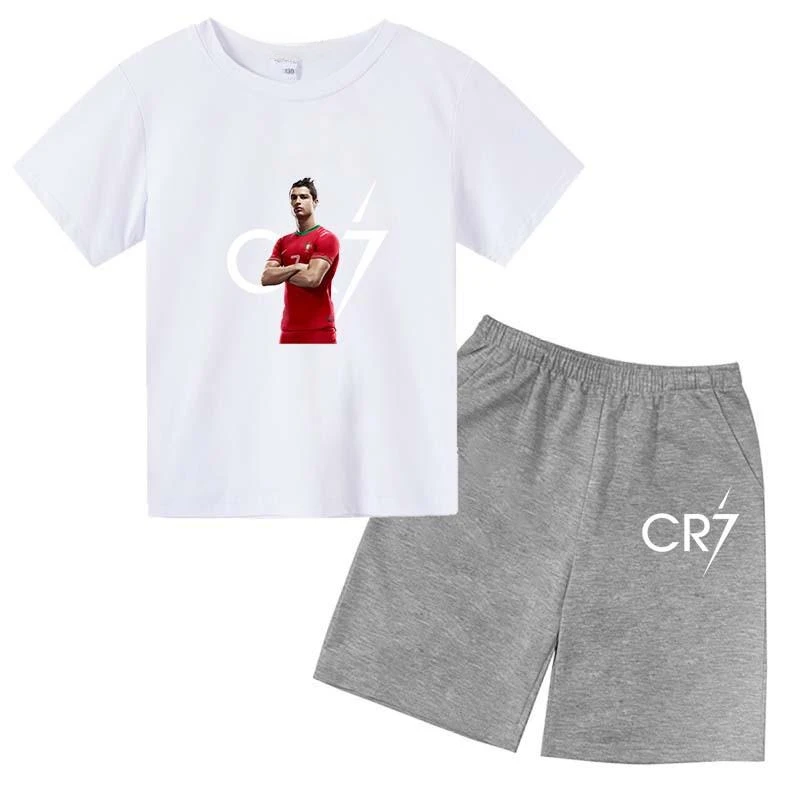 Kids Fashion Summer CR7 Sports Suits 2-14 Years Boys Girls 2pcs Casual Short Sleeve T-shirts+Pants Sets Children Idol Clothes