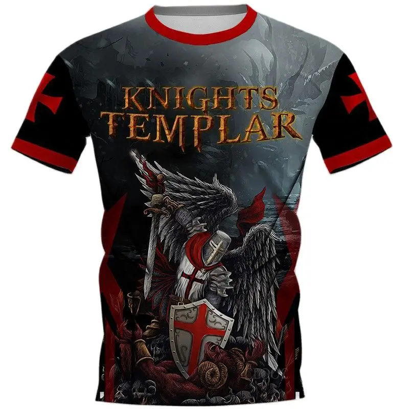 Knights Templar 3D Printing T Shirt Man Summer O-Neck Short Sleeve Oversized Top Casual Tee Loose Streetwear Harajaku