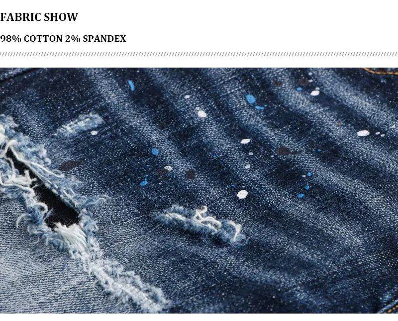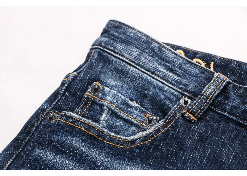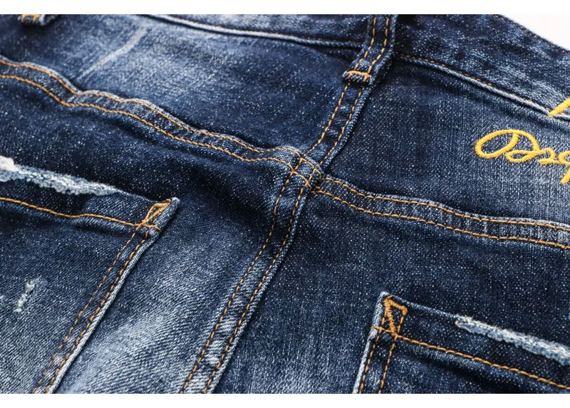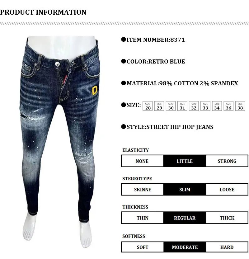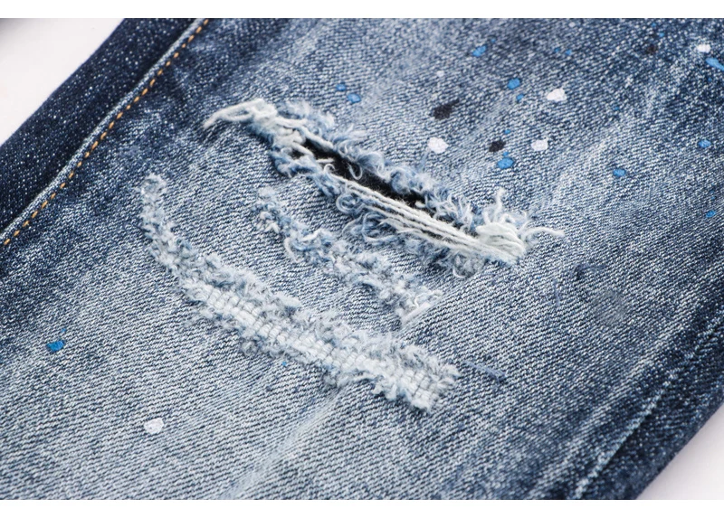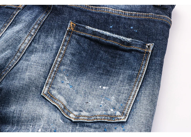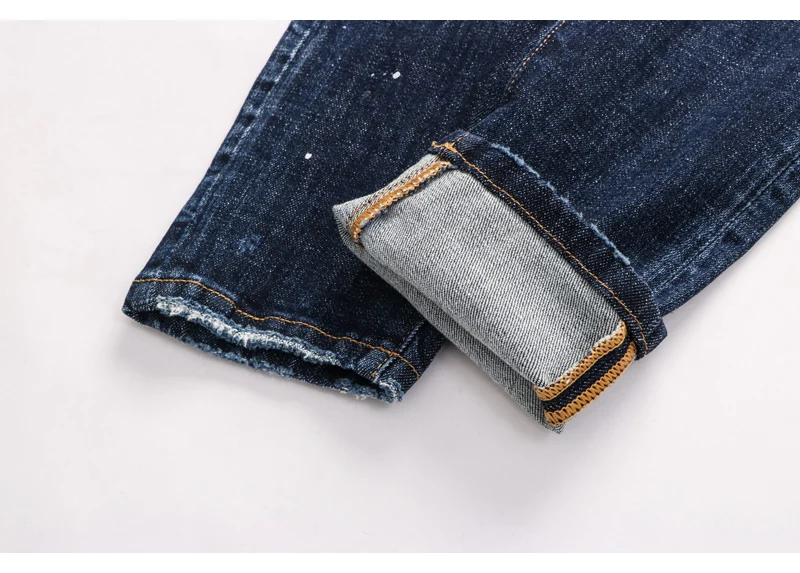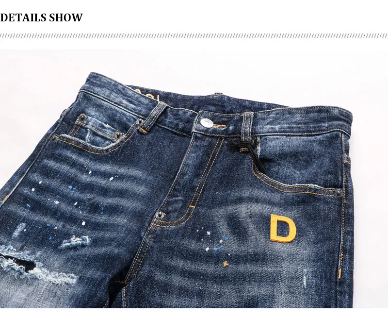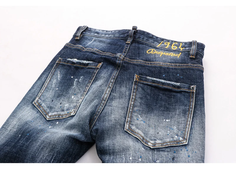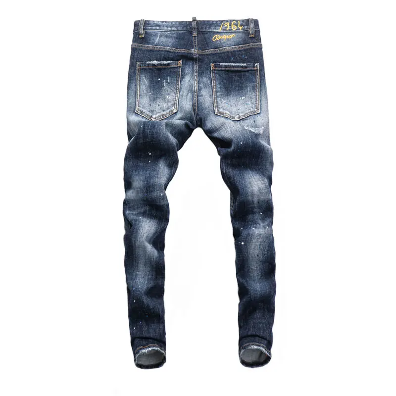 Latest designer fashion new men's jeans, washed, vintage painted embroidery, stretchy slim fit hombre