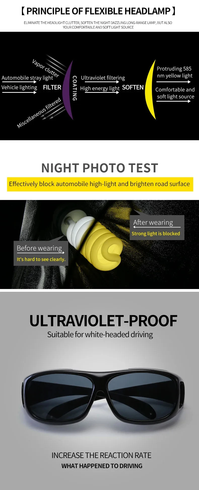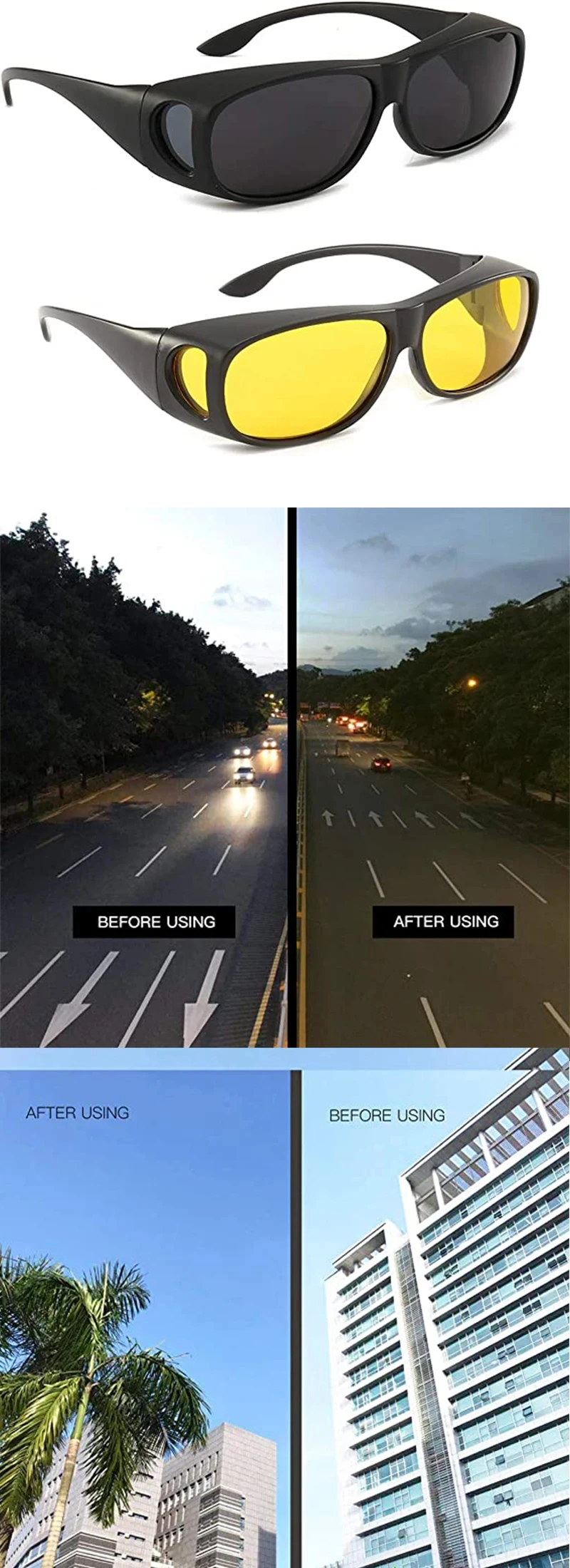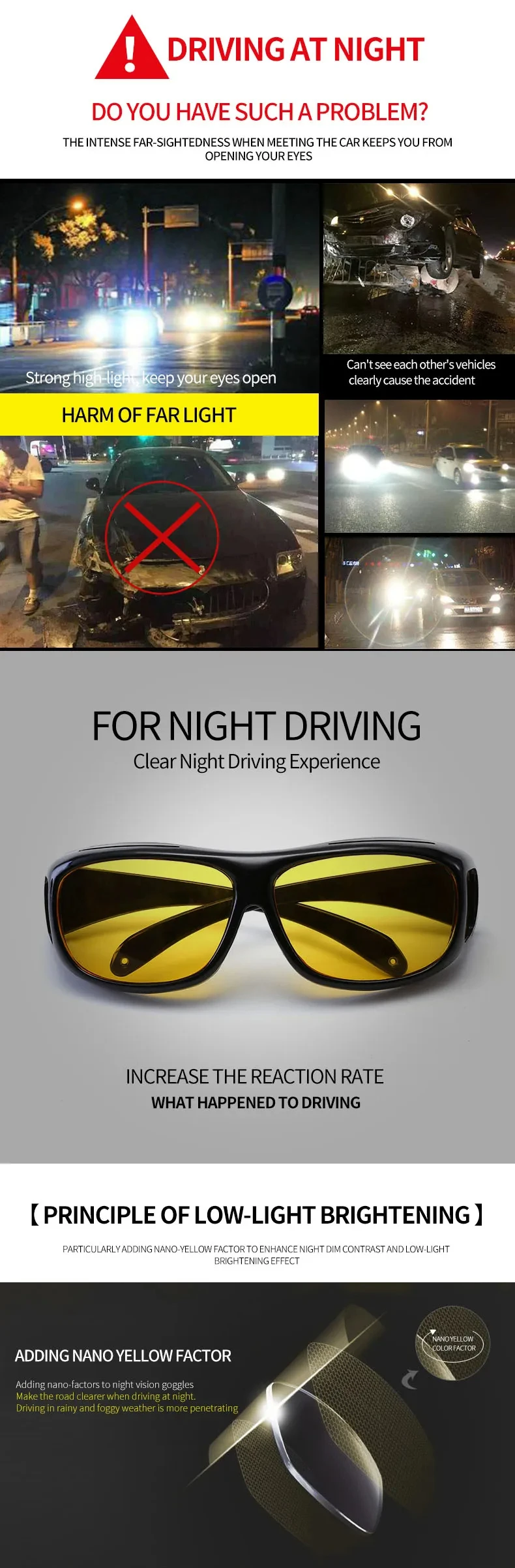 Motorcycle Driving Goggles Car Night Vision Sunglasses Unisex Driver HD Night Day Driving Wrap Around Anti Glare Sun glasses