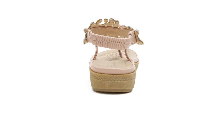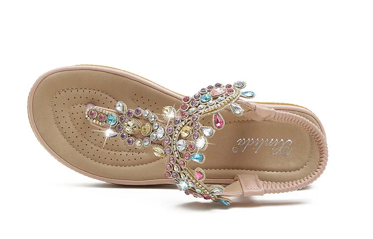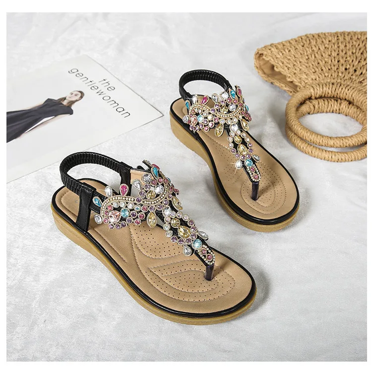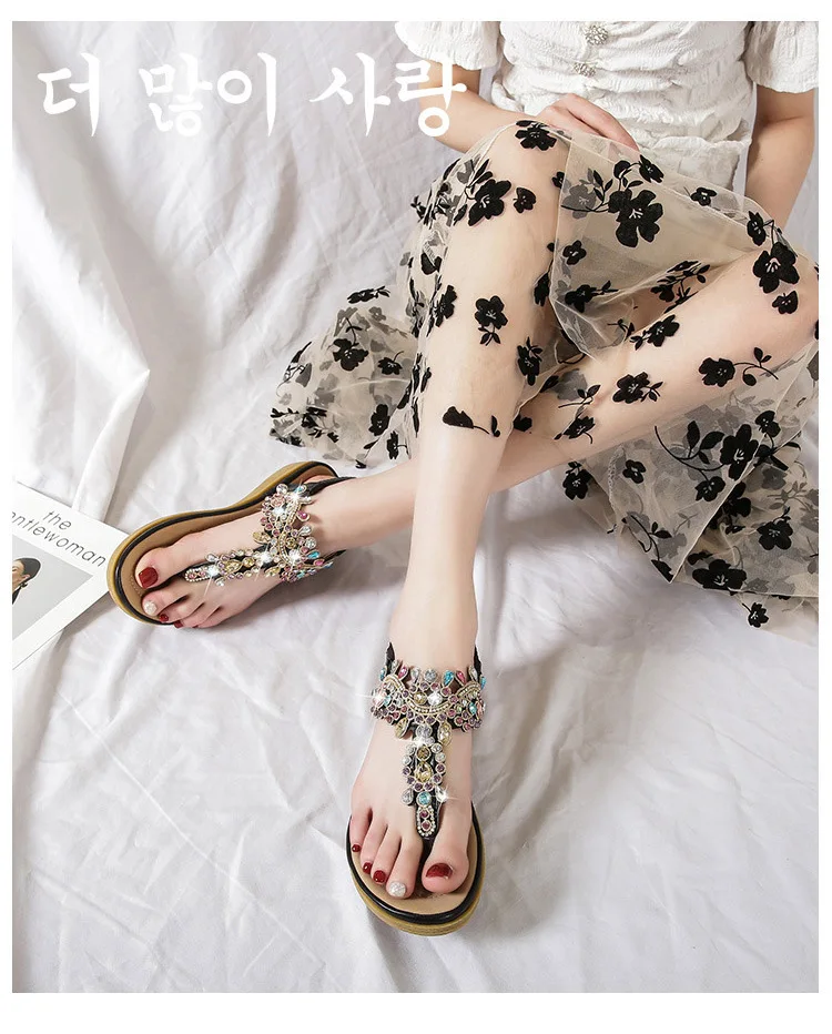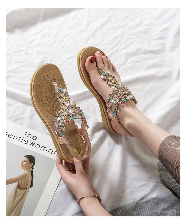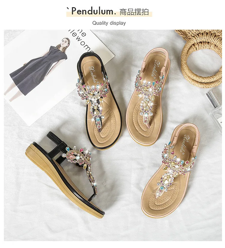 Plus Size 36-41 Shoes for Women Summer New Round Toe Flip Flops Fashion Rhinestone Ladies Sandals Roman Crystal Platform Elastic