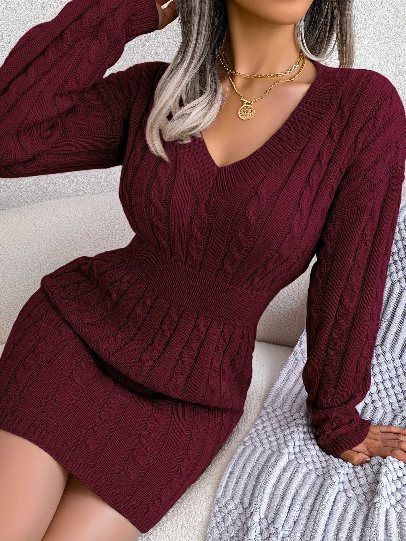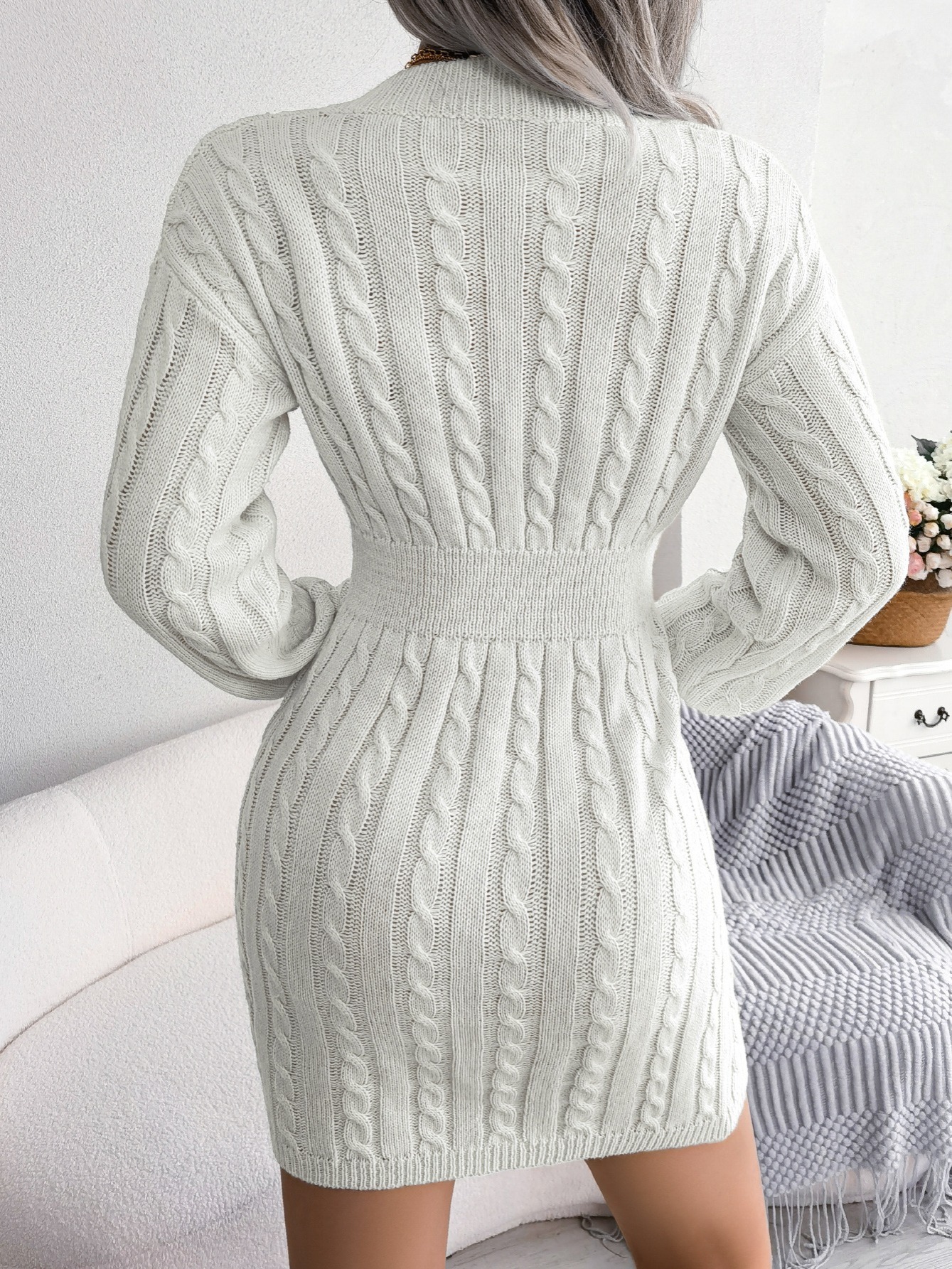 Qiu Dong Europe And The United States Leisure Solid Color Waist Hemp Twist Hip Dress Sweater Dress