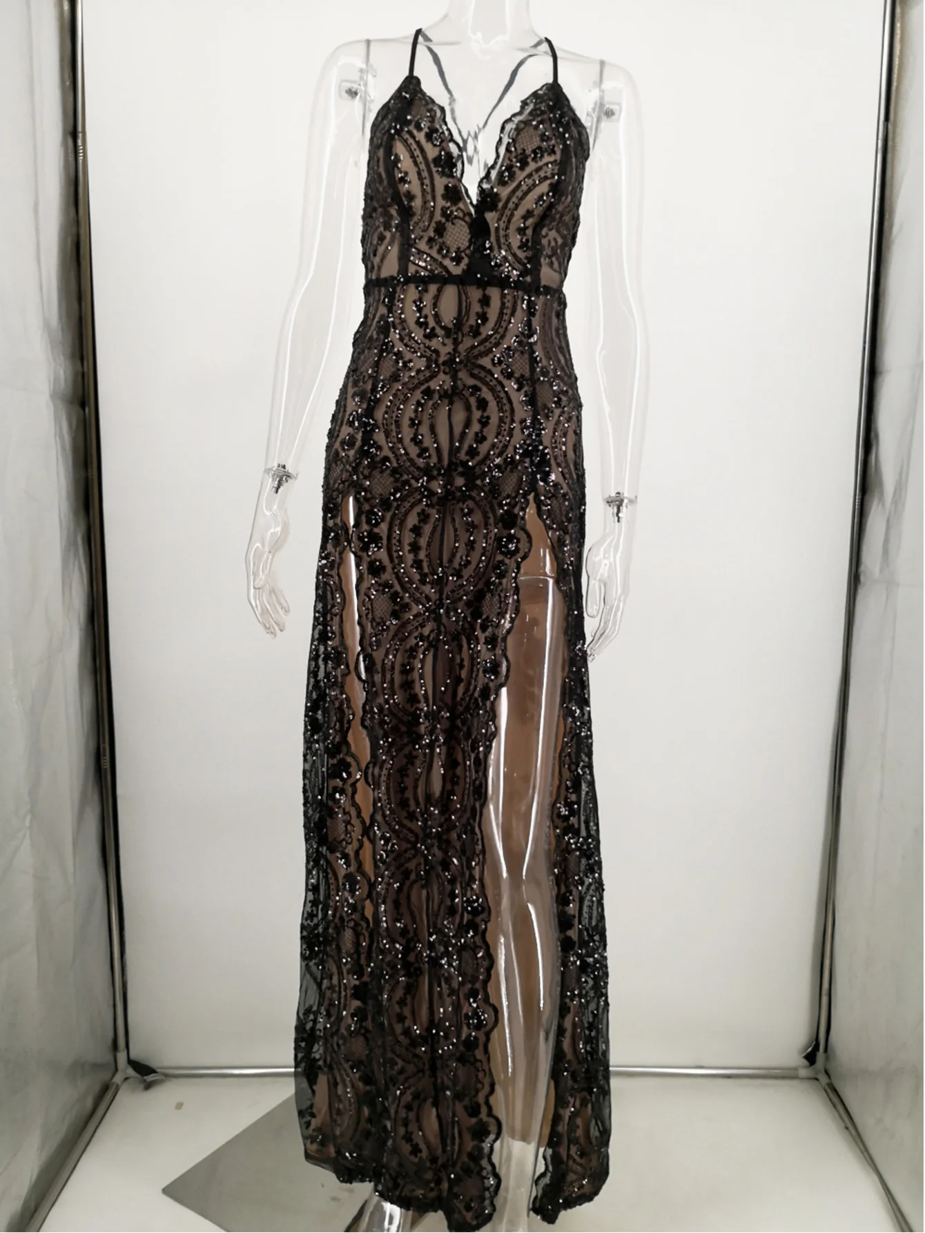 Sexy Black white Red Sequins Summer Maxi Dress Women Spaghetti Strap Christmas party dress Night club Long Dresses vestidos Hot